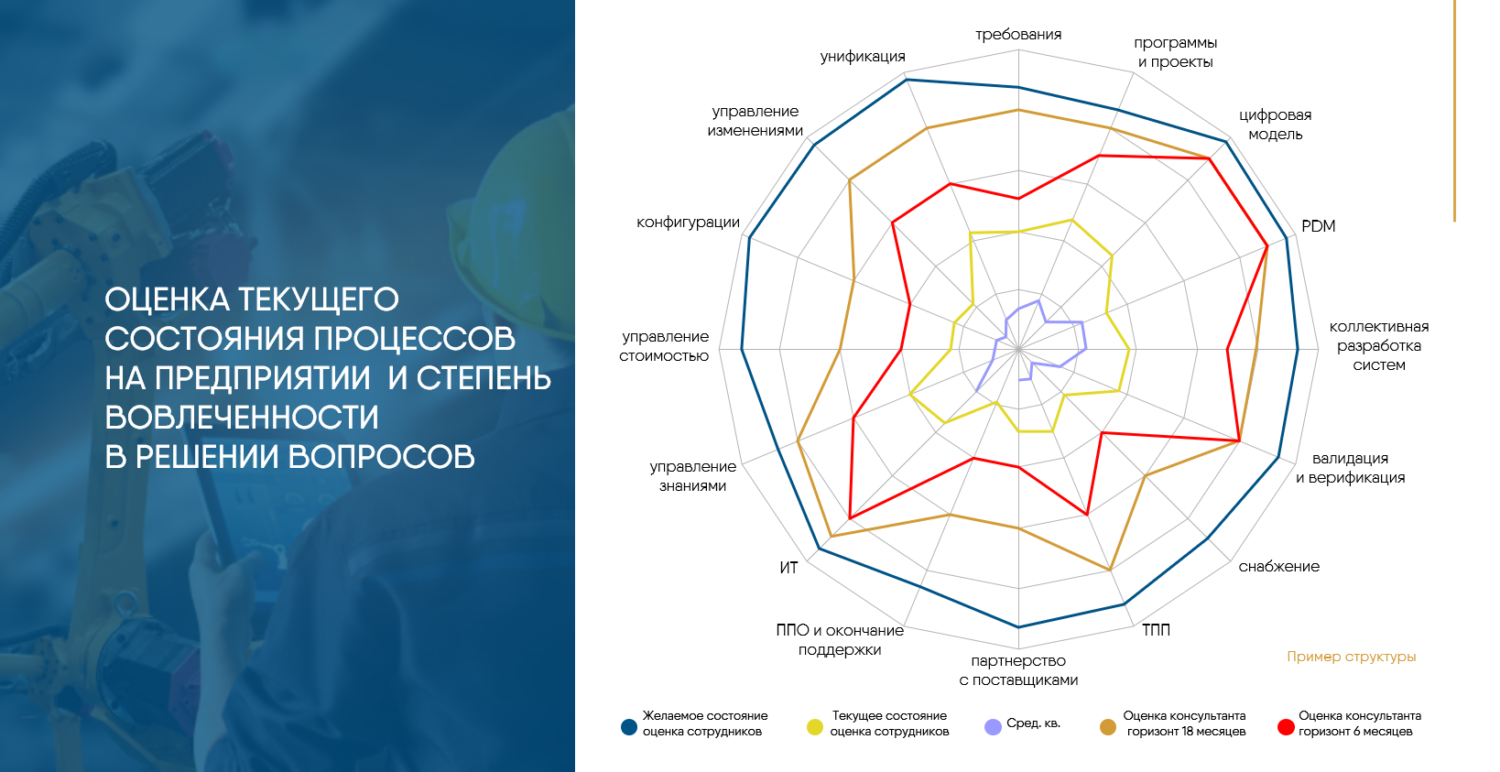 Современный мир диктует промышленным компаниям постоянную модернизацию бизнес-процессов, которая, как правило, заключается в пересмотре и внедрении более продвинутых цифровых решений на разных этапах развития. Как выстроить эффективную стратегию цифровой трансформации, чтобы она стала действенным инструментом развития и совершенствования бизнеса? Мы может ответить на насущные вопросы по диджитализации процессов в различных отраслях экономики. Отдельно оказываем услуги консалтинга по модернизации процессов и создания единой корпоративной информационной среды управления, в частности и по отдельности, по комплексной автоматизации производства, создания цифровых двойников, оптимизации аддитивного производства, реинжиниринга бизнес-процессов проектирования, технического аудита, программного переоснащения конструкторско-технологических подразделений, разработки и внедрения интегрированных систем документооборота.